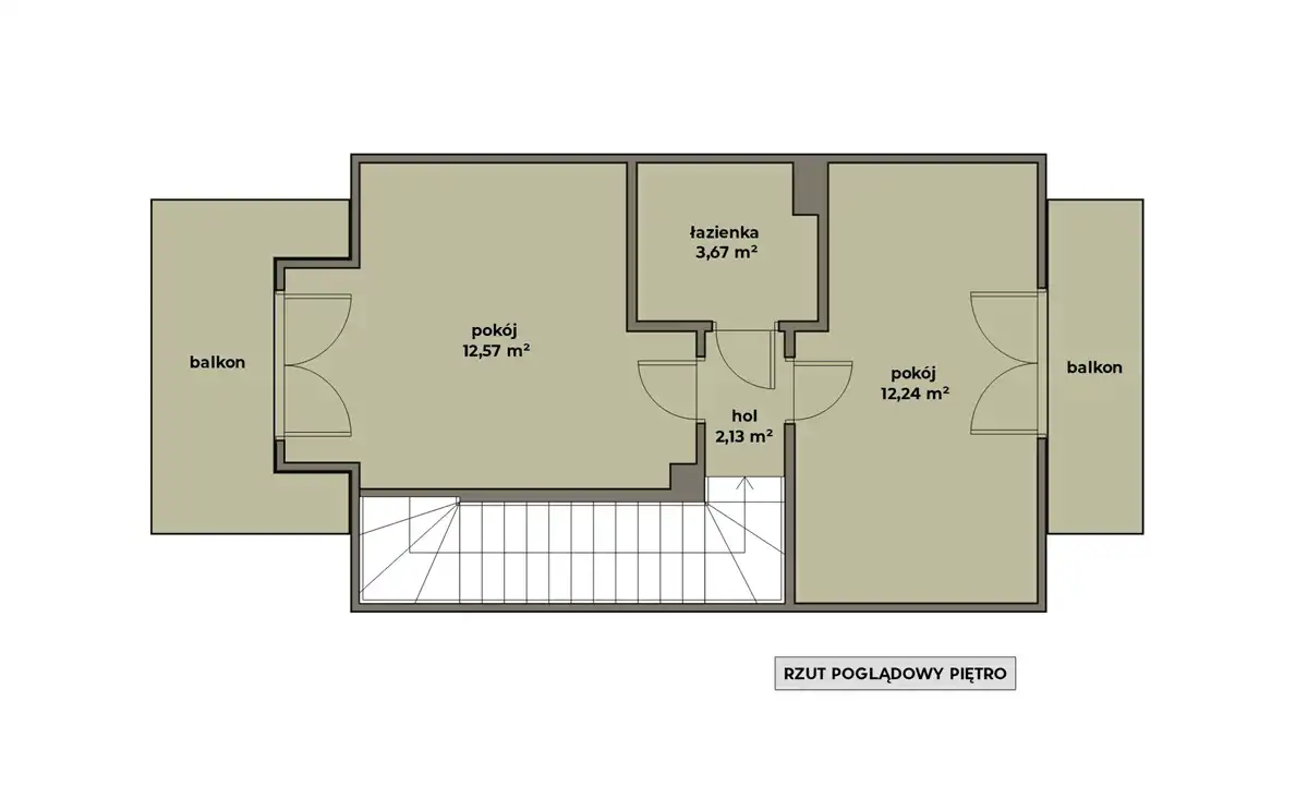 - 2 niezależne sypialnie (12,57 i 12,24 m2), obie z balkonami