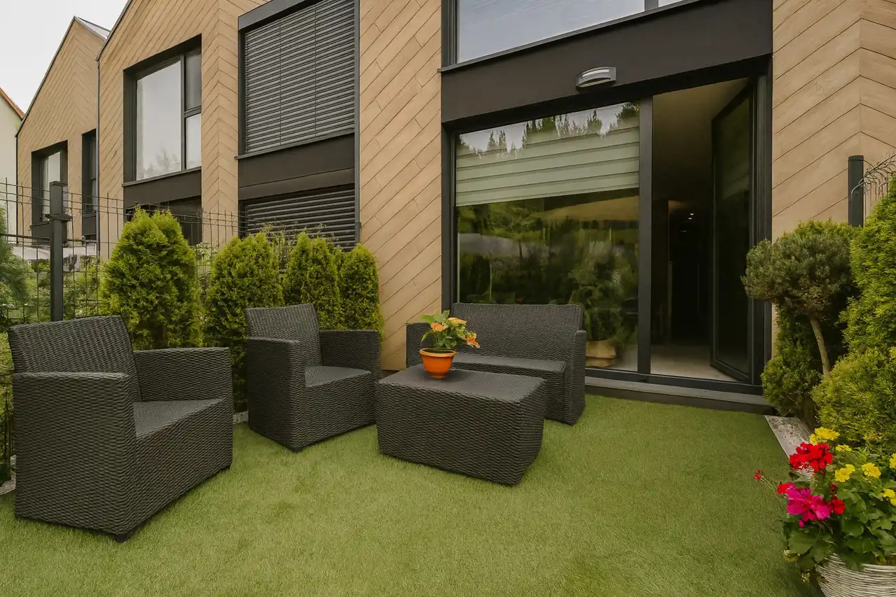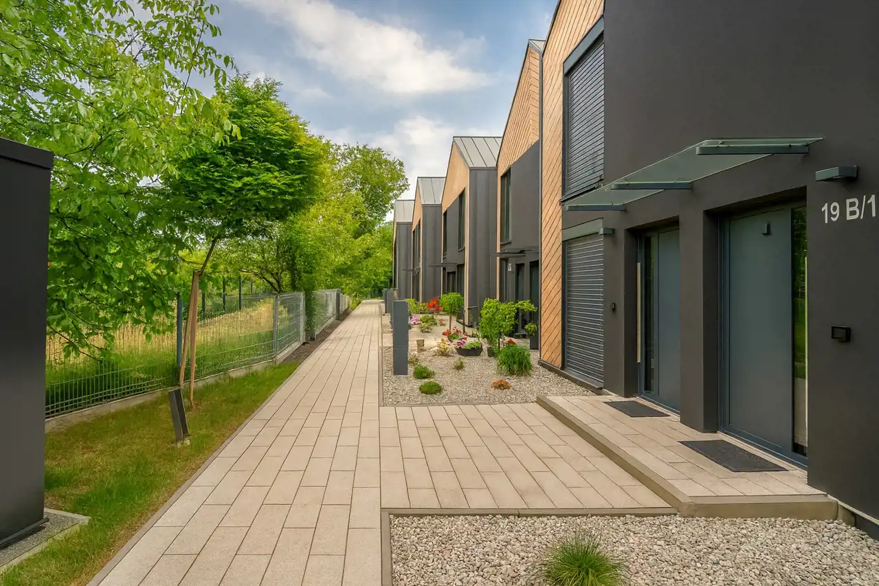 Dom zlokalizowany jest w na nowoczesnym osiedlu. Teren wokół budynków pięknie zadbany, wjazd przez bramę na pilota.