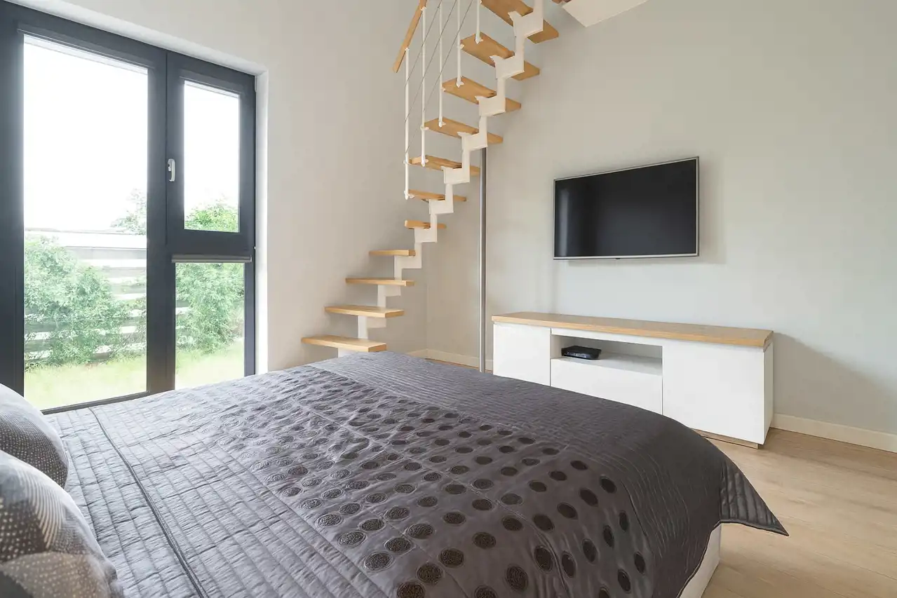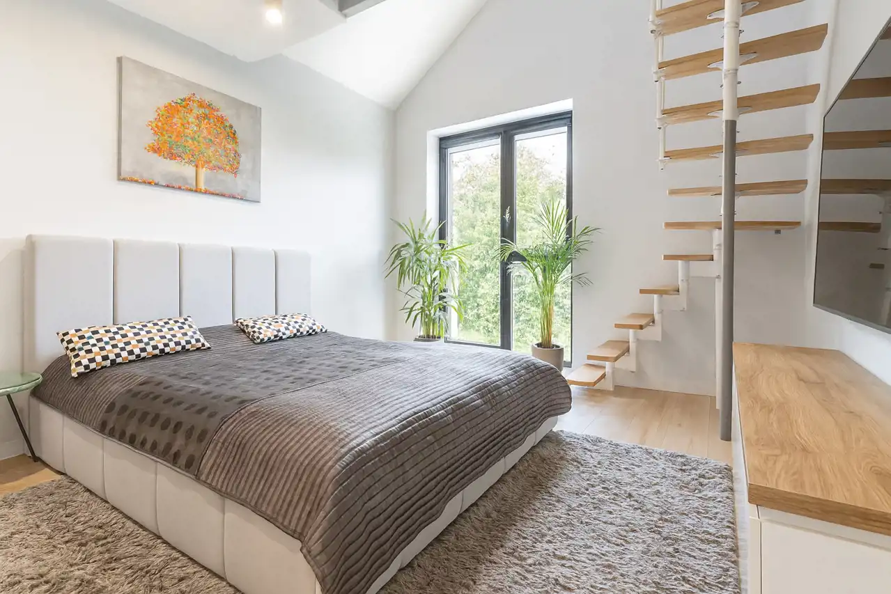 - poziom piętra pierwszego: dwie sypialnie, łazienka z prysznicem