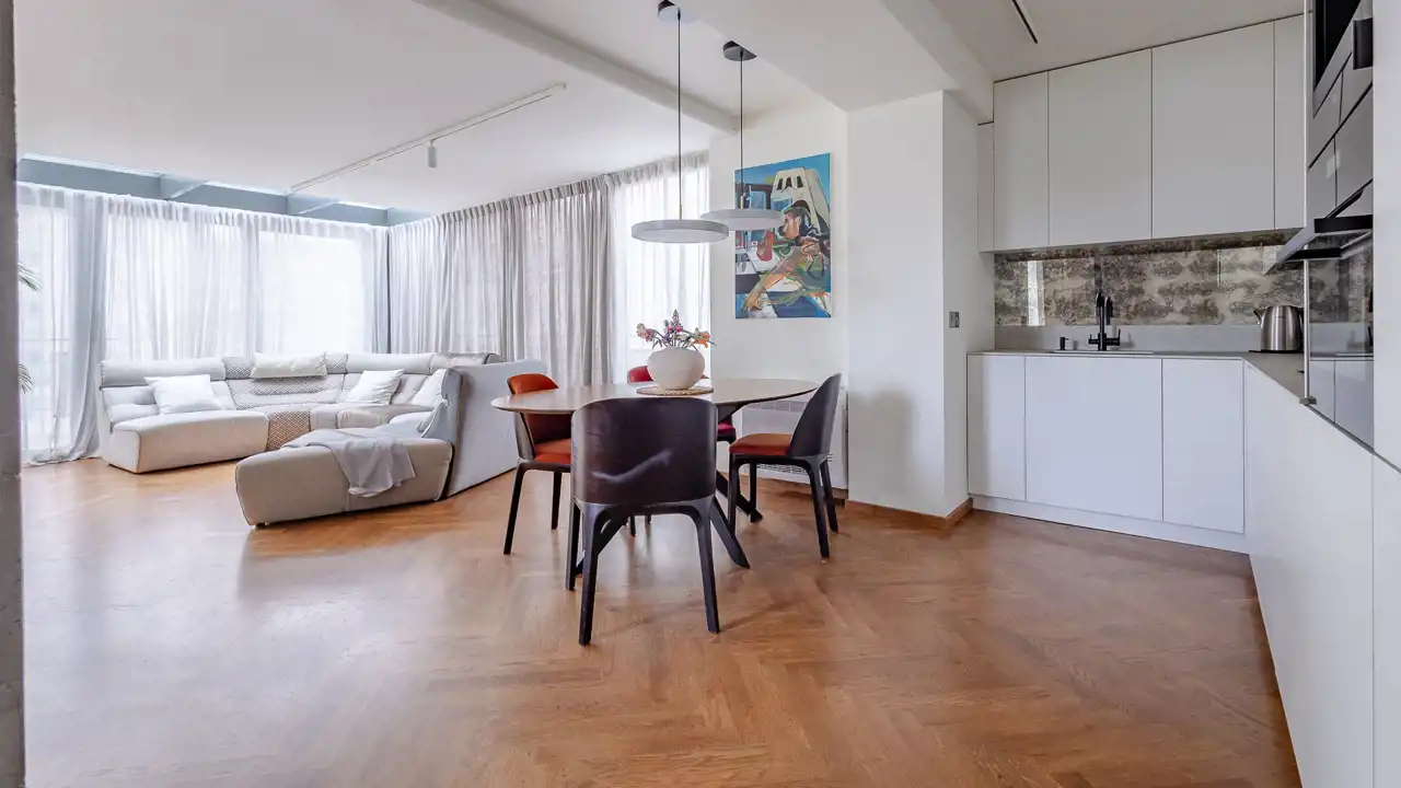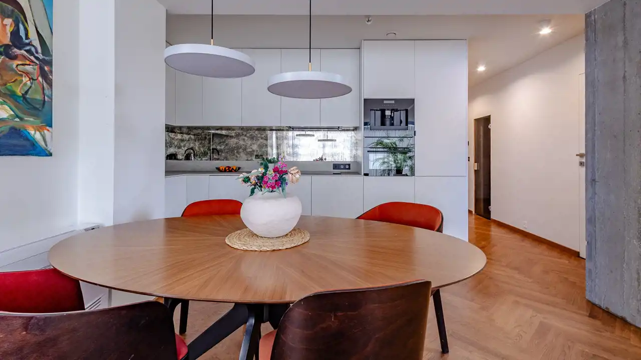 Ten 4-pokojowy apartament wykończony w 2021 roku mieści się na pierwszym piętrze kameralnego budynku, w którym znajdują się zaledwie trzy mieszkania i dwa lokale użytkowe. Brzmi jak cisza, spokój i sąsiedzka atmosfera? Dokładnie tak!