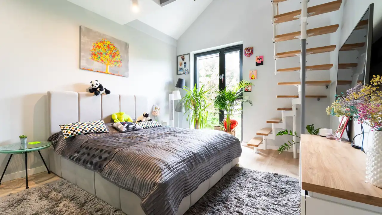 - poziom piętra pierwszego: dwie sypialnie, łazienka z prysznicem