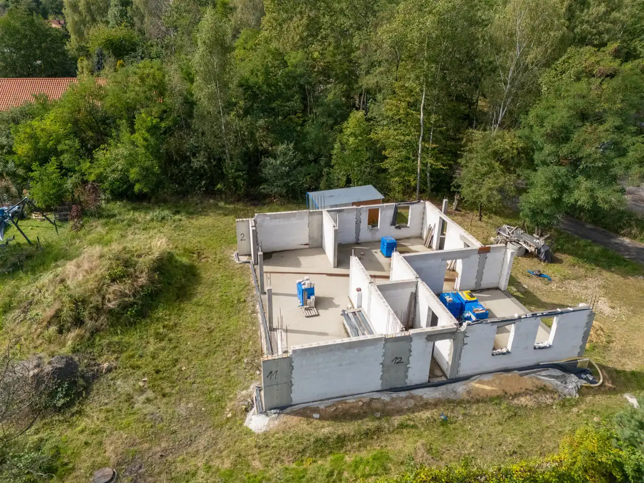 Nieruchomość posiada rozpoczętą budowę nowoczesnego domu jednorodzinnego z prawomocnym pozwoleniem na budowę oraz kompletnym projektem architektonicznym. Prace są już na etapie postawionych ścian parteru, co pozwala przyszłemu właścicielowi zaoszczędzić czas i kontynuować inwestycję. Projekt zakłada dom wolnostojący, dwukondygnacyjny, niepodpiwniczony, o powierzchni zabudowy 219,2 m². Na parterze przewidziano 99,24 m² powierzchni mieszkalnej, na piętrze 85,95 m², a w bryle budynku zaplanowano przestronny garaż dwustanowiskowy o powierzchni 40,32 m². Układ funkcjonalny gwarantuje wygodę i przestrzeń – pięć sypialni, trzy łazienki oraz trzy garderoby czynią ten projekt idealnym dla większej rodziny poszukującej komfortu i odrobiny luksusu.