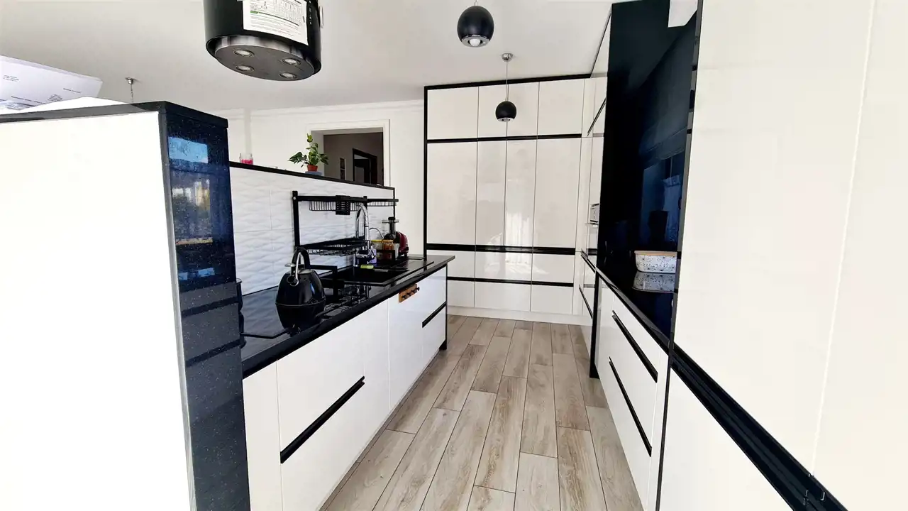 - Jasny i przestronny salon połączony z kuchnią o łącznej powierzchni ok. 45m2, nowa zabudowa kuchenna z dużą ilością szafek do przechowywania oraz wysokiej jakości sprzętem AGD (zmywarka, piekarnik oraz płyta indukcyjna - firmy Bosch, chłodziarka – firmy Electrolux)