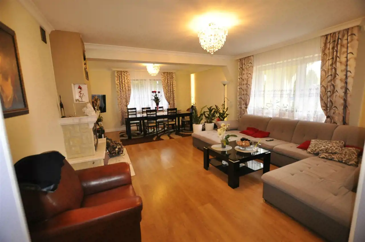 BARDZO ŁADNY,ZADBANY DOM PARTEROWY W UŻYTKOWYM PODDASZEM O POWIERZCHNI CAŁKOWITEJ 275,4 M 2 ; POSADOWIONY NA DZIAŁCE O POWIERZCHNI 4390 M 2. W M. NADARZYN.