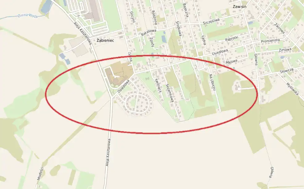 Działka jest świetnie skomunikowana - 20 km od Warszawy (ok. 15 min. samochodem).