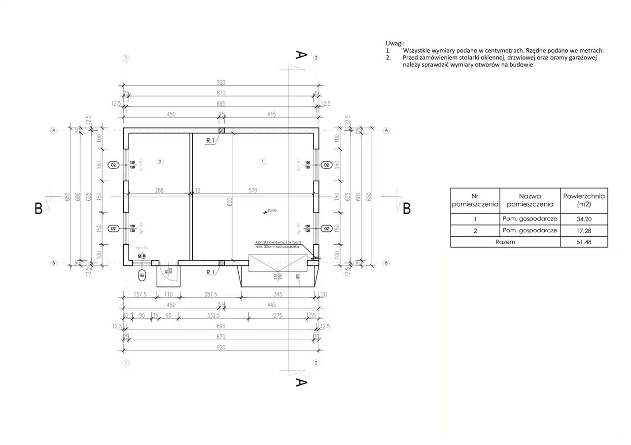 - pomieszczenie warsztatowe np. garaż - ok. 34 m2;