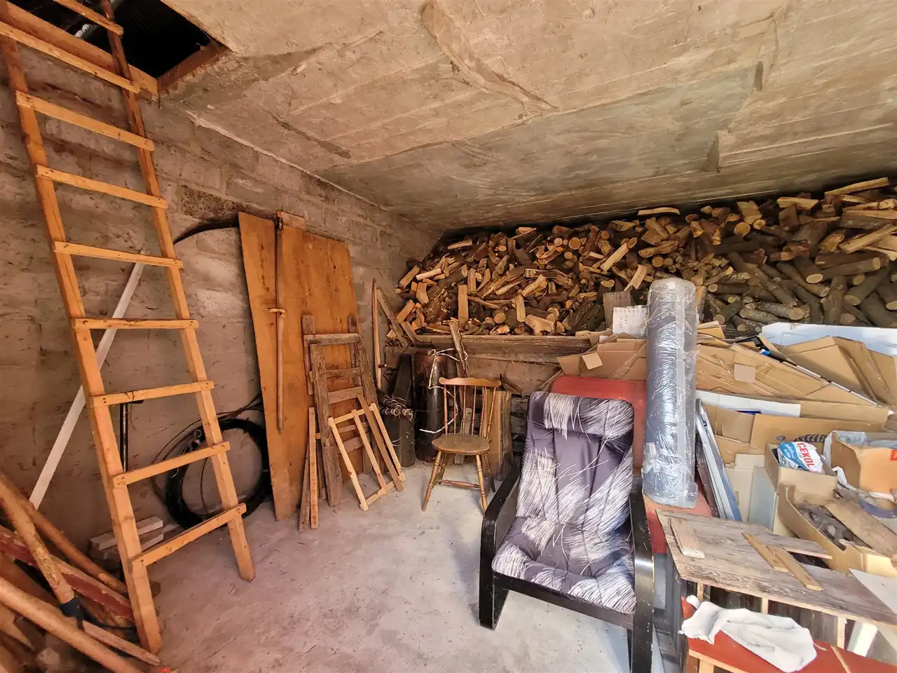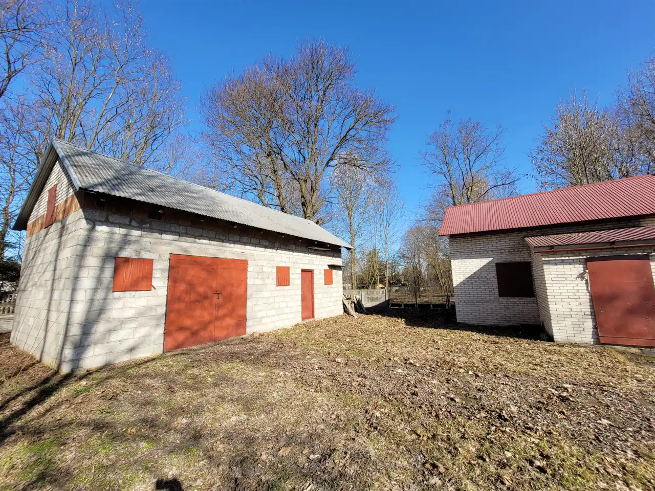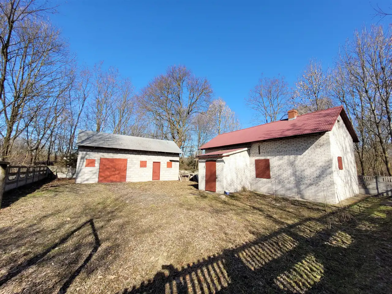 Na działce znajduje się domek letniskowy oraz budynek gospodarczy z garażem i pomieszczeniem do przechowywania sprzętu lub narzędzi.