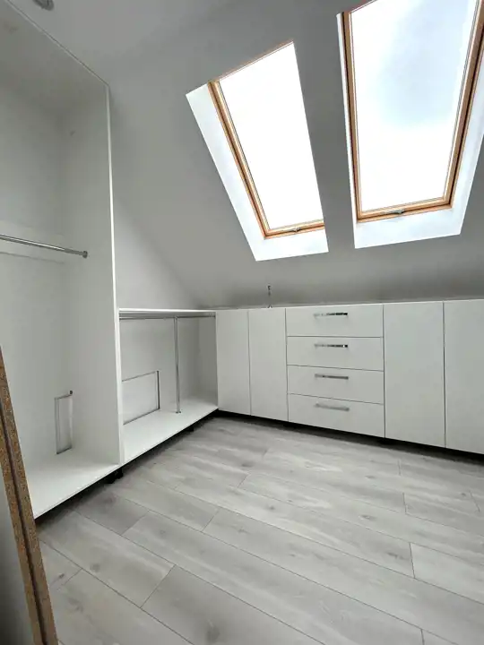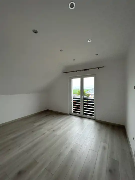 Piętro domu stanowią trzy ustawne sypialnie, garderoba oraz przestronna łazienka.