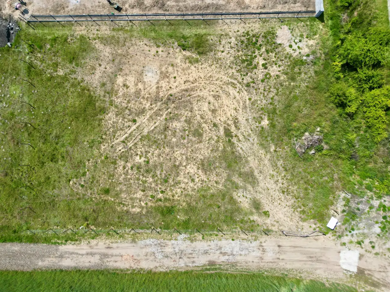 Teren płaski, ogrodzony płotem z siatki, wymiary nieruchomości : 43x29 m.