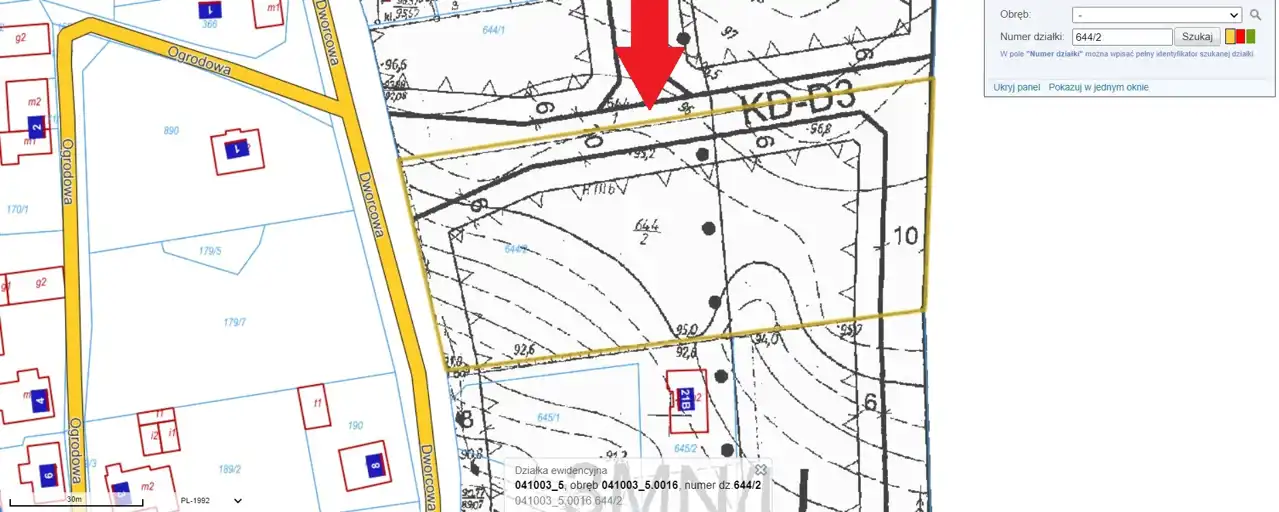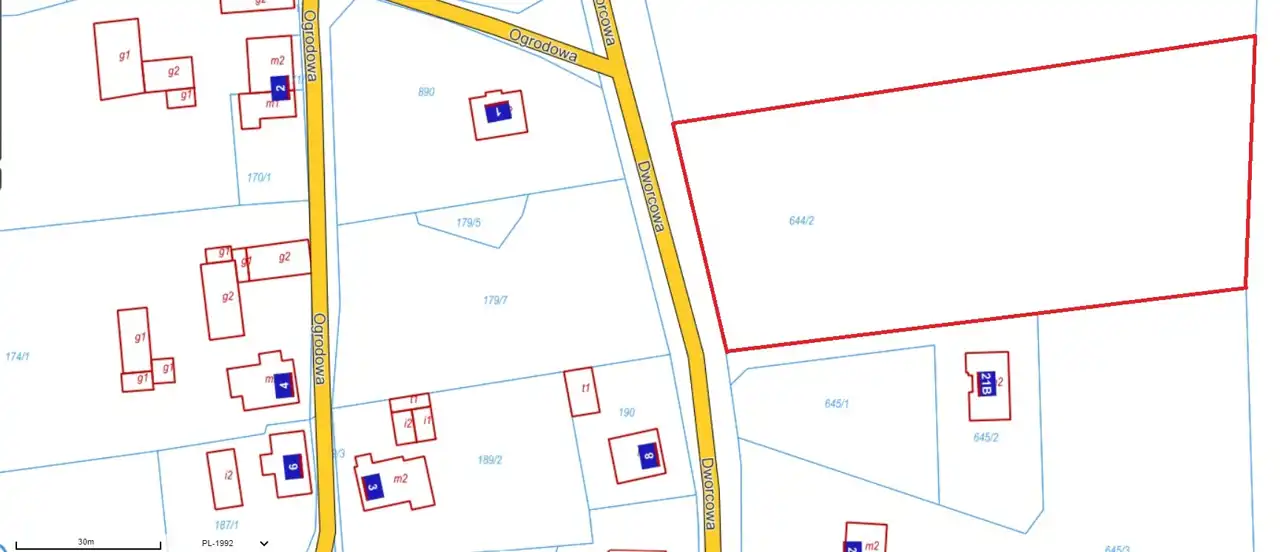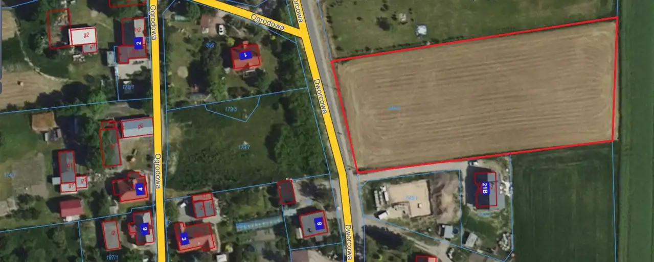 - Działka Niezagospodarowana, lekko nachylona, prostokąt