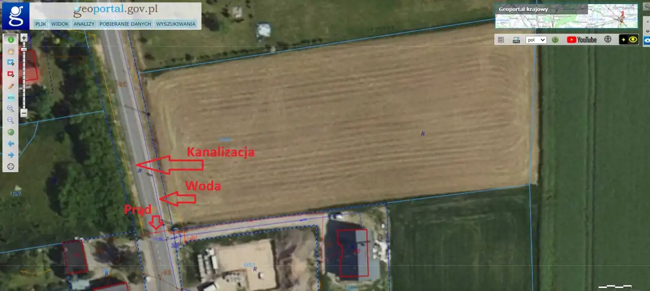 - Media Woda: w ulicy; Kanalizacja: w ulicy; Prąd: w ulicy