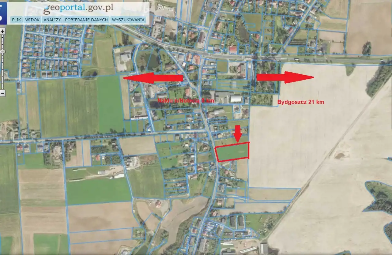 Działka położona jest 9 km od Nakła n/Notecią i 21 km od Bydgoszczy.