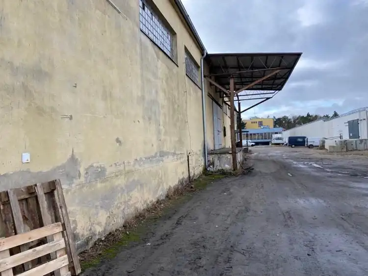 Hala o powierzchni 400 m2 posiada bramę oraz rampę , wysokość 5,3 m.