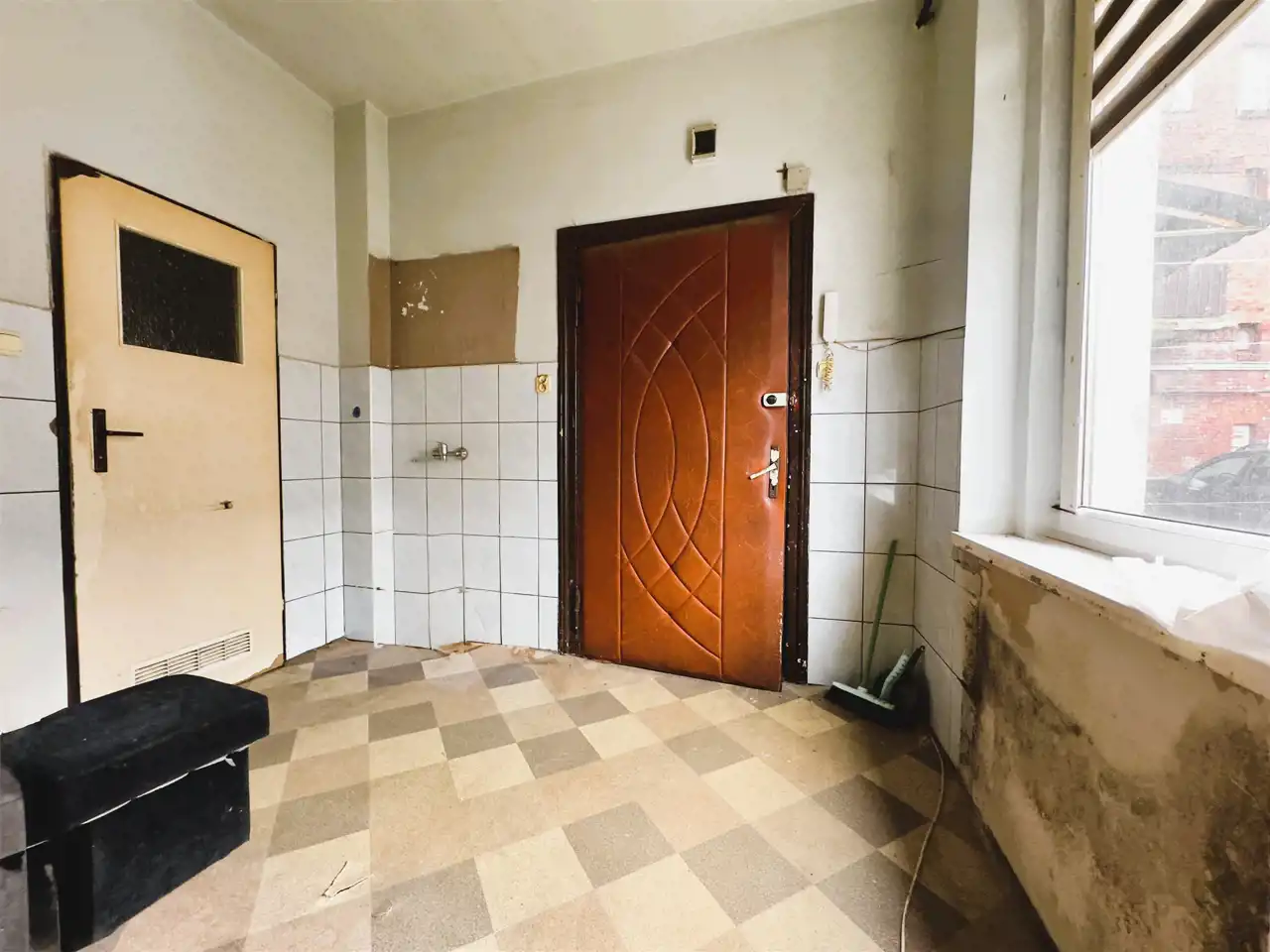 Nieruchomość wymaga remontu, składa się z dwóch przejściowych pokoi, łazienki z toaletą oraz przynależnej piwnicy o powierzchni 6 m².