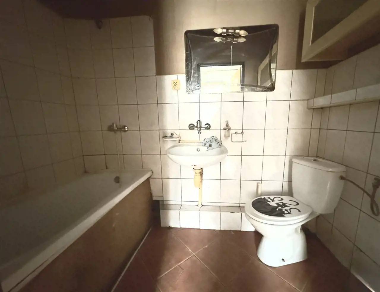 Nieruchomość wymaga remontu, składa się z dwóch przejściowych pokoi, łazienki z toaletą oraz przynależnej piwnicy o powierzchni 6 m².