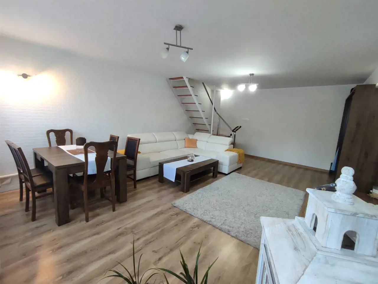 Nieruchomość jest dwupoziomowa, składa się z 3 sypialni, osobnej kuchni, łazienki z WC, a także posiada do wyłącznego korzystania ogródek i garaż blaszany.