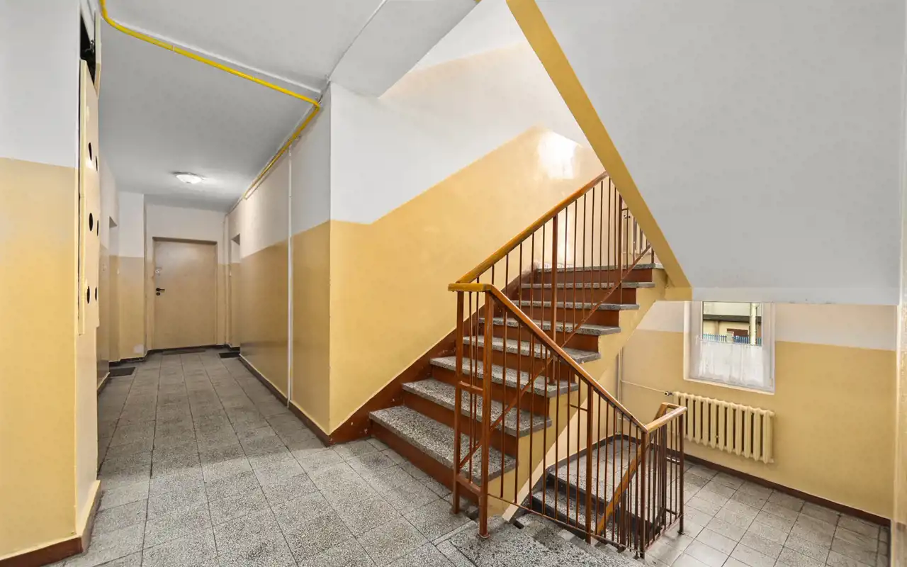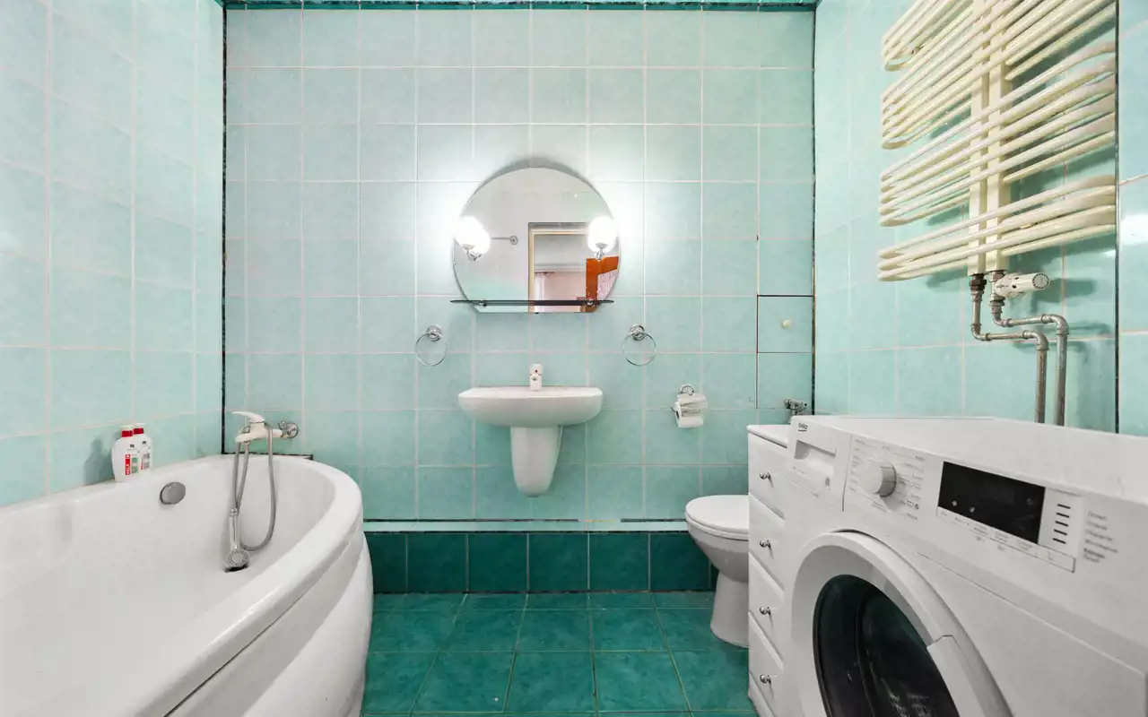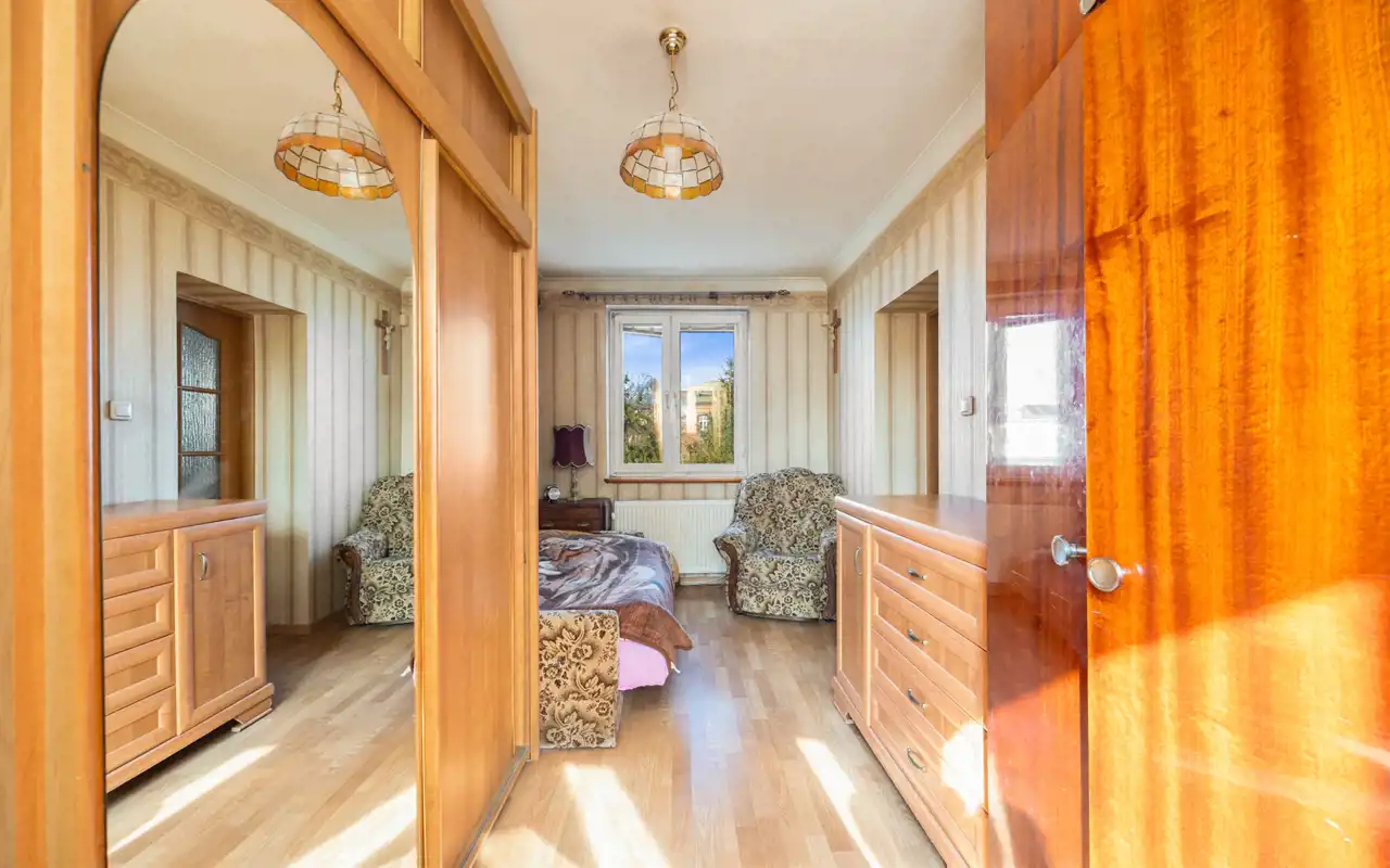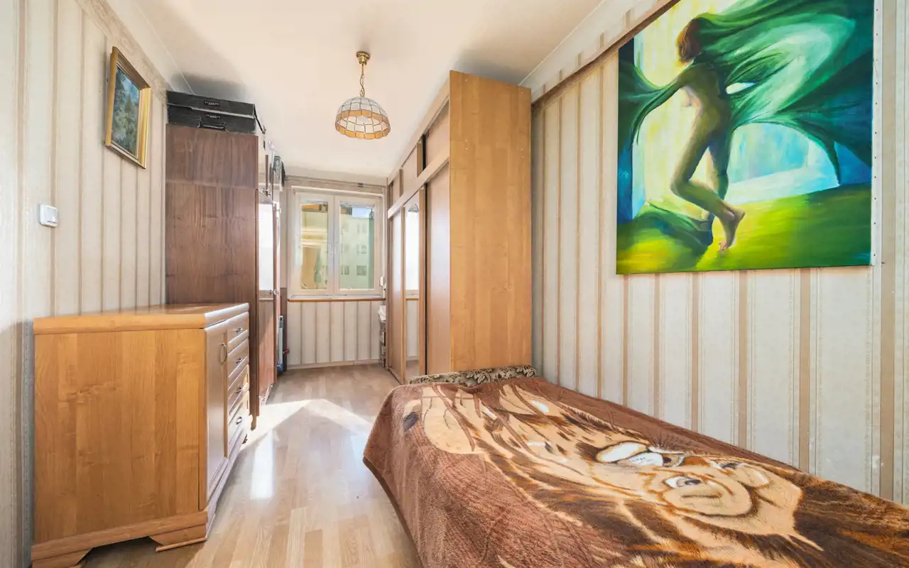 Mieszkanie oryginalnie stanowiło trzy pokoje z osobną kuchnia, lecz ściana działowa między pokojem a kuchnią została usunięta i powstał salon z aneksem. Lokal bez problemu można przywrócić do układu pierwotnego.
