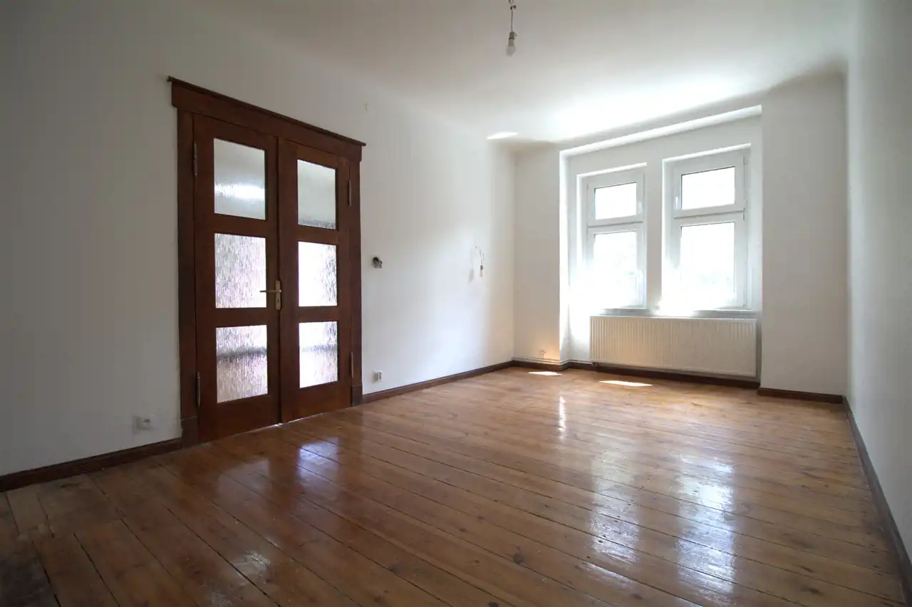 Podłogi w bardzo dobrym stanie – nie wymagają wymiany, nadają wnętrzu ciepło i przytulność, które tworzą niepowtarzalny urok tego miejsca.