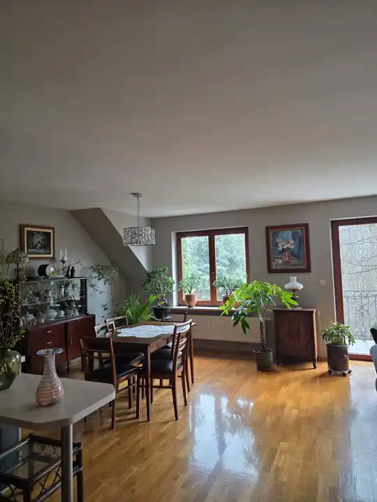 Mieszkanie (dom) położone jest w spokojnej, urokliwej dzielnicy w sąsiedztwie parku oraz terenów zielonych.