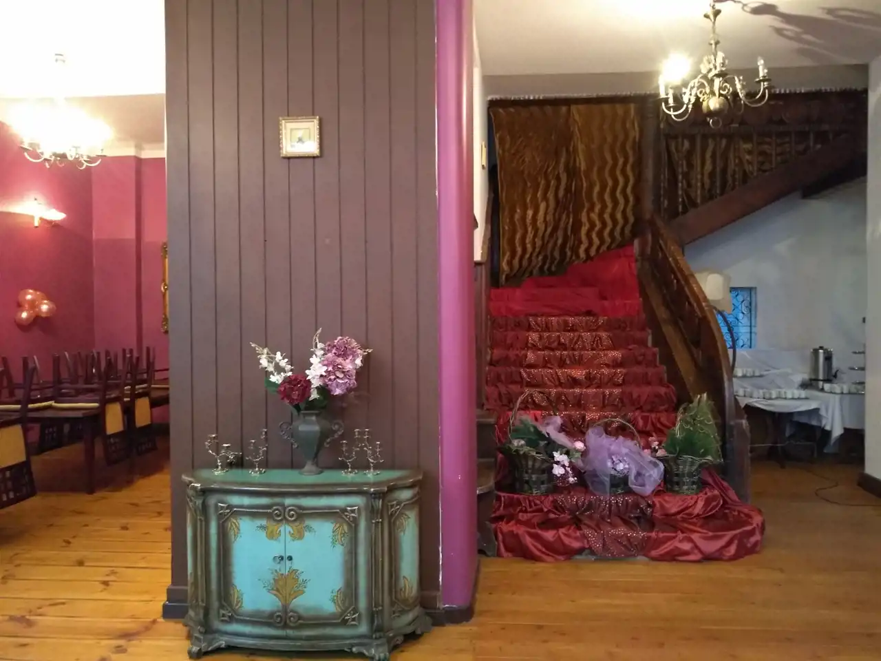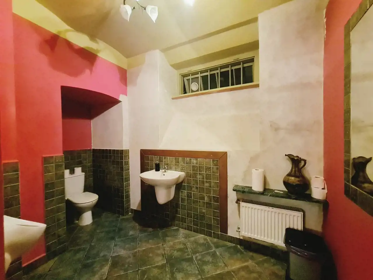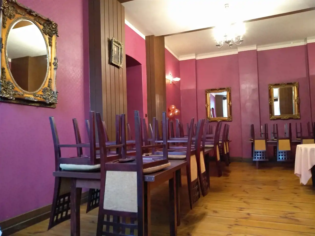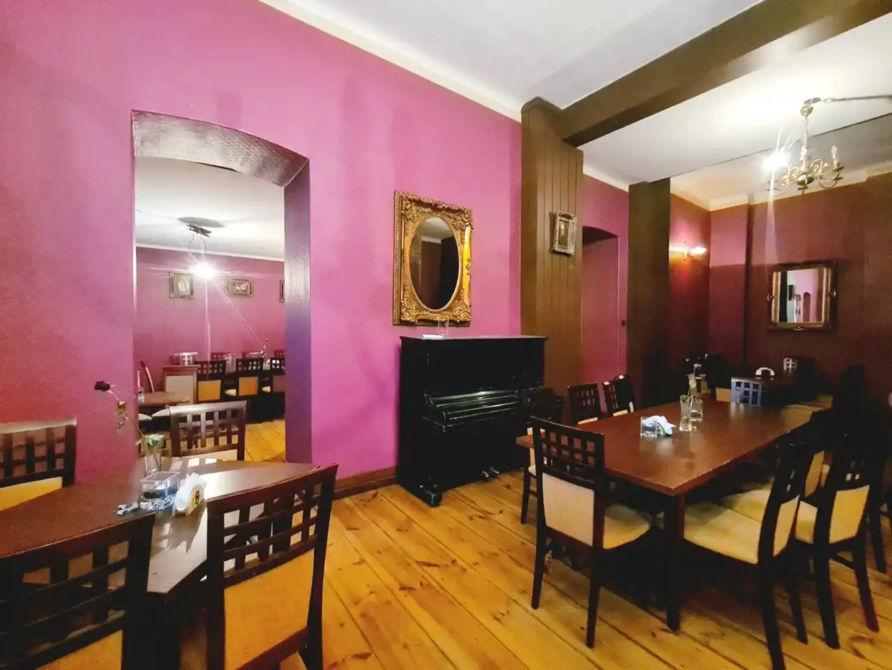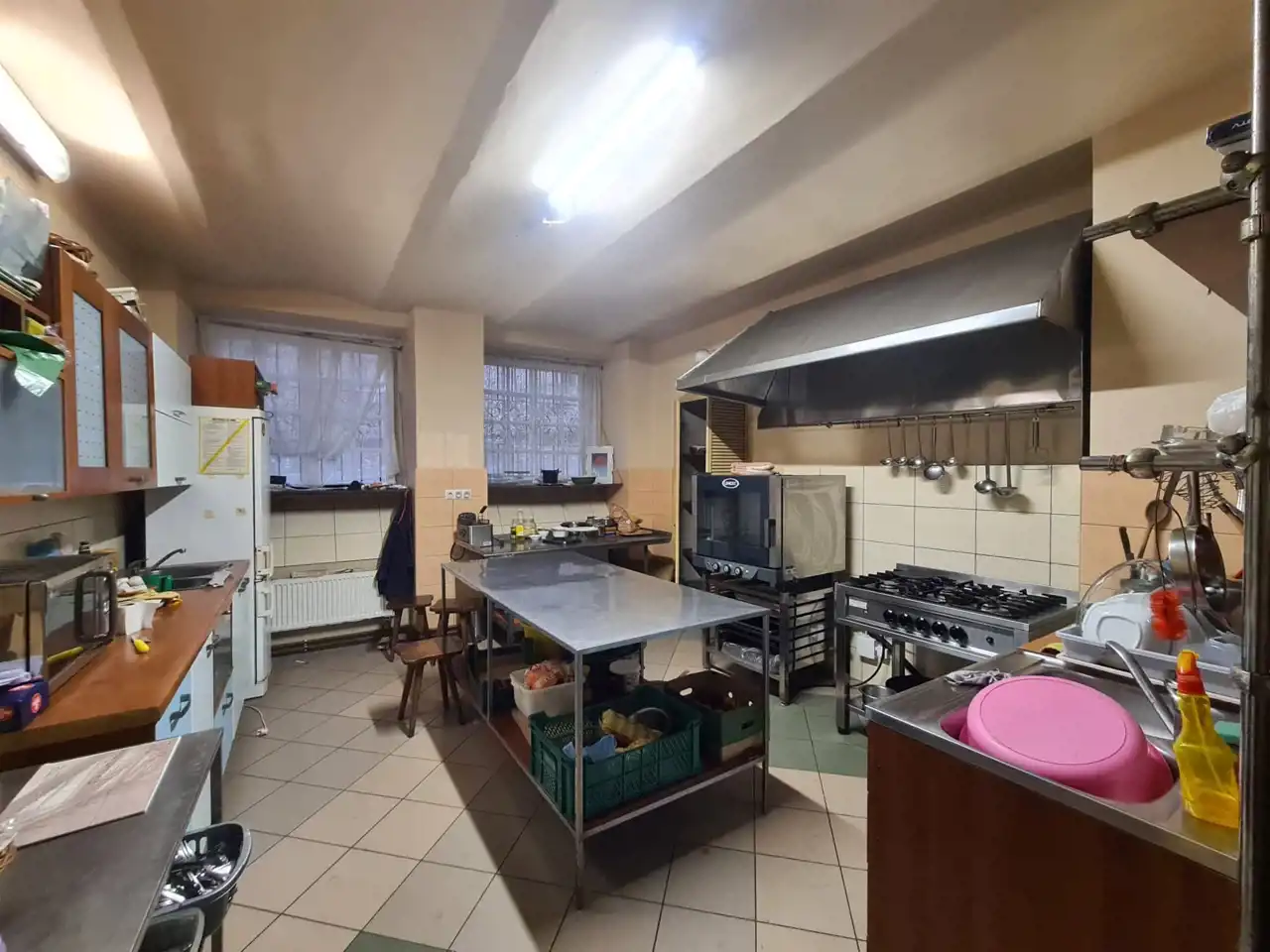 W przyziemiu sala restauracyjna z barem i zapleczem kuchennym oraz dwie toalety.
