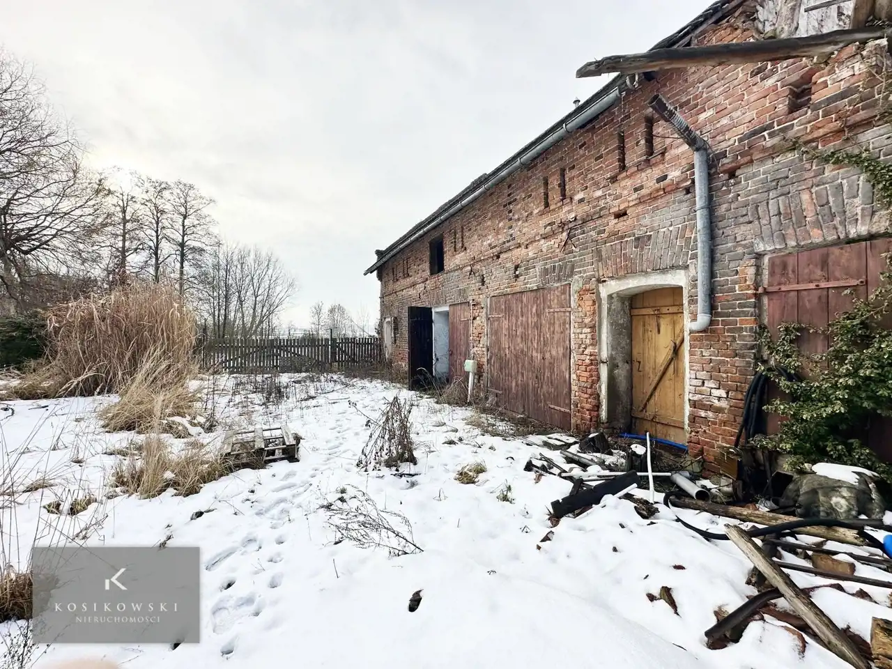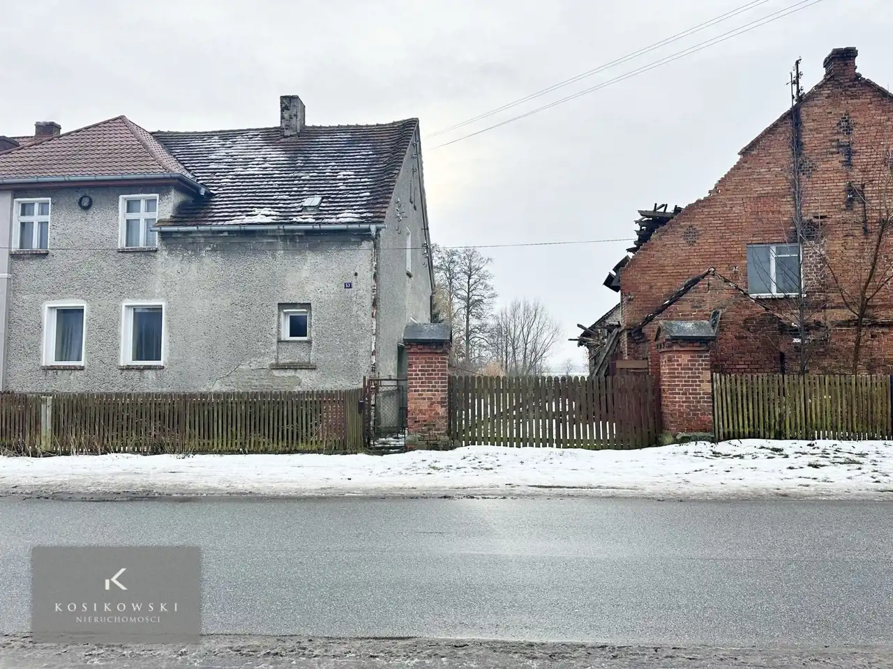 Budynki ; mieszkalny i gospodarcze o pow. 101, 247 i 7 m2 w zwartej zabudowie. Częściowo z zawalonym dachem i ścianami . Wymagają wyburzenia lub remontu.