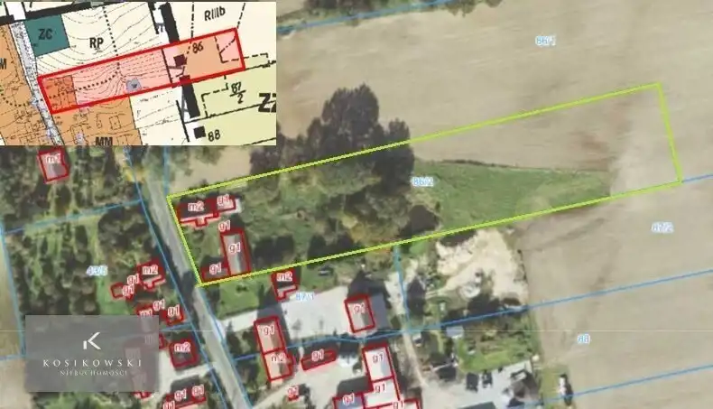 Działka o pow. ponad 1 hektara jest częściowo ogrodzona i zagospodarowana. Liczne nasadzenia drzewek owocowych i ozdobnych . Posiada bezpośredni dostęp do drogi. Jej niewątpliwym atutem jest niewielki staw – powstały samoistnie w skutek pochylenia terenu.