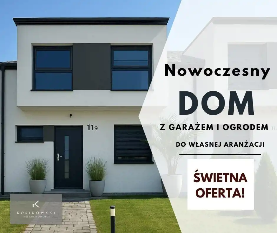 Dodatkowo w całym domu zewnętrzne rolety automatyczne. Do budowy zostały użyte nowoczesne technologie i dobrej jakości materiały budowlane. Działka o powierzchni 408 m2 jest ogrodzona. Posadowiono na niej garaż o pow. 17,11 m2 . Przed budynkiem wybrukowane miejsce postojowe.