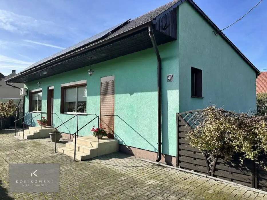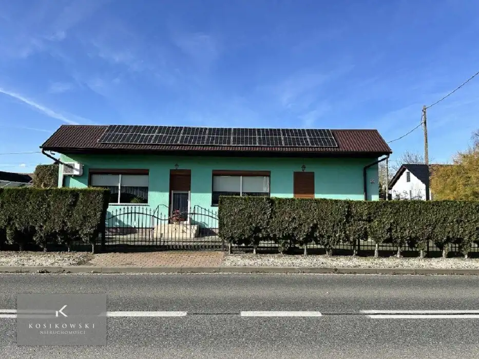 Nieruchomość usytuowana jest na ogrodzonej działce o powierzchni 400 m², z estetycznie wykonanym podjazdem z kostki brukowej. Aktualnie dom posiada jedno wejście — od strony ogrodu, prowadzące przez urokliwy, zadaszony ganek. Istnieje jednak możliwość wykonania wejścia od strony drogi głównej — co przy funkcji usługowej jest szczególnie korzystne.