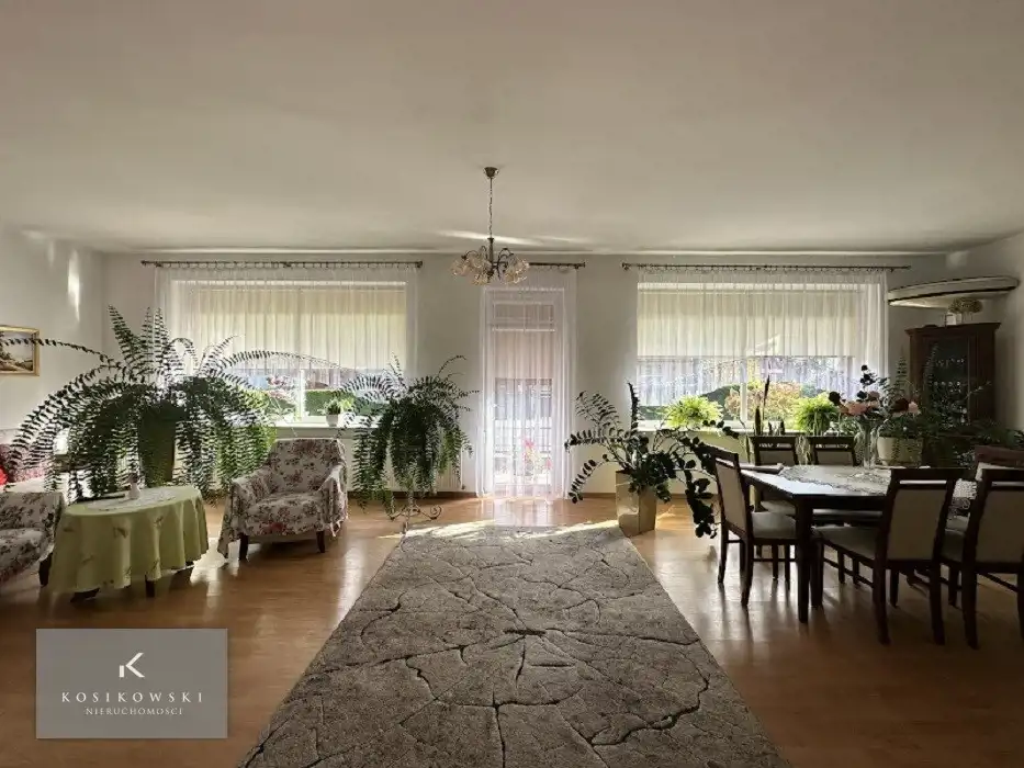 Wnętrze domu jest jasne i przestronne, a jego układ daje duże możliwości własnej aranżacji — zarówno mieszkalnej, jak i komercyjnej. Centralną część zajmuje bardzo duży salon, który może zostać przekształcony według potrzeb nowego właściciela: wydzielenie dodatkowych pomieszczeń, stworzenie salonu z otwartą kuchnią lub pozostawienie go jako przestrzeni reprezentacyjnej - open space handlowo-usługowego.