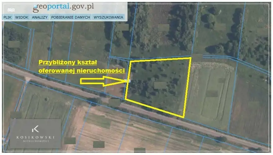 Działka maja kształt zbliżony do prostokąta. Jej ukształtowanie oraz brak zabudowań pozwala przyszłemu właścicielowi na dogodną aranżację terenu i wybór projektu budowlanego. W pobliżu media tj. prąd, woda, światłowód. Działki położone w sąsiedztwie lasu i a w okolicy malownicze stawy, co dodatkowo uatrakcyjnia zakup przedmiotowej nieruchomości. Dojazd drogą gminną asfaltową. W bardzo bliskiej odległości znajduję się bezpłatne przedszkole oraz publiczna szkoła, która oferuję bogatą ofertę zajęć dydaktycznych, opiekę specjalistów, bogate zaplecze oraz stołówkę szkolną. Jest to atrakcyjna oferta dla młodych rodzin z dziećmi szukających odpowiedniego miejsca do zamieszkania lub osób poszukujących ciszy i spokoju.