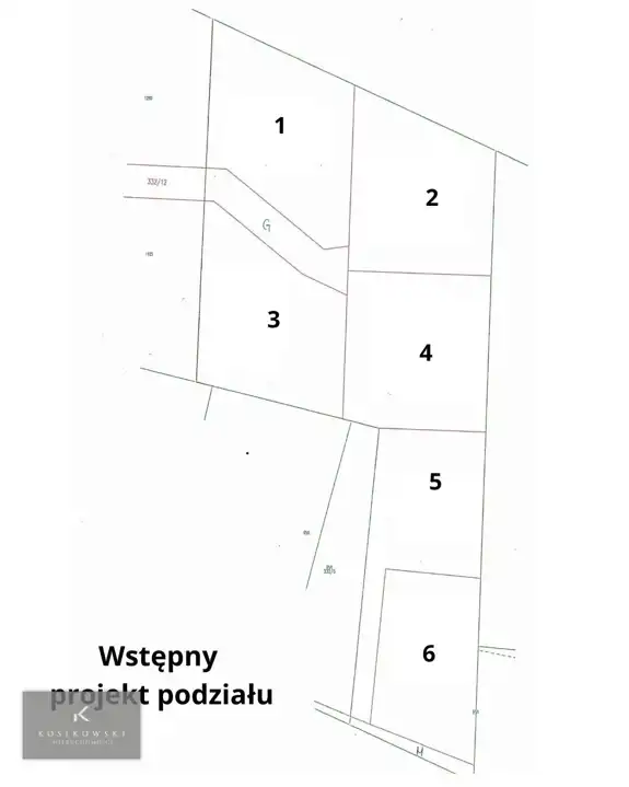 Teren zostanie podzielony na 6 działek budowlanych o powierzchniach: