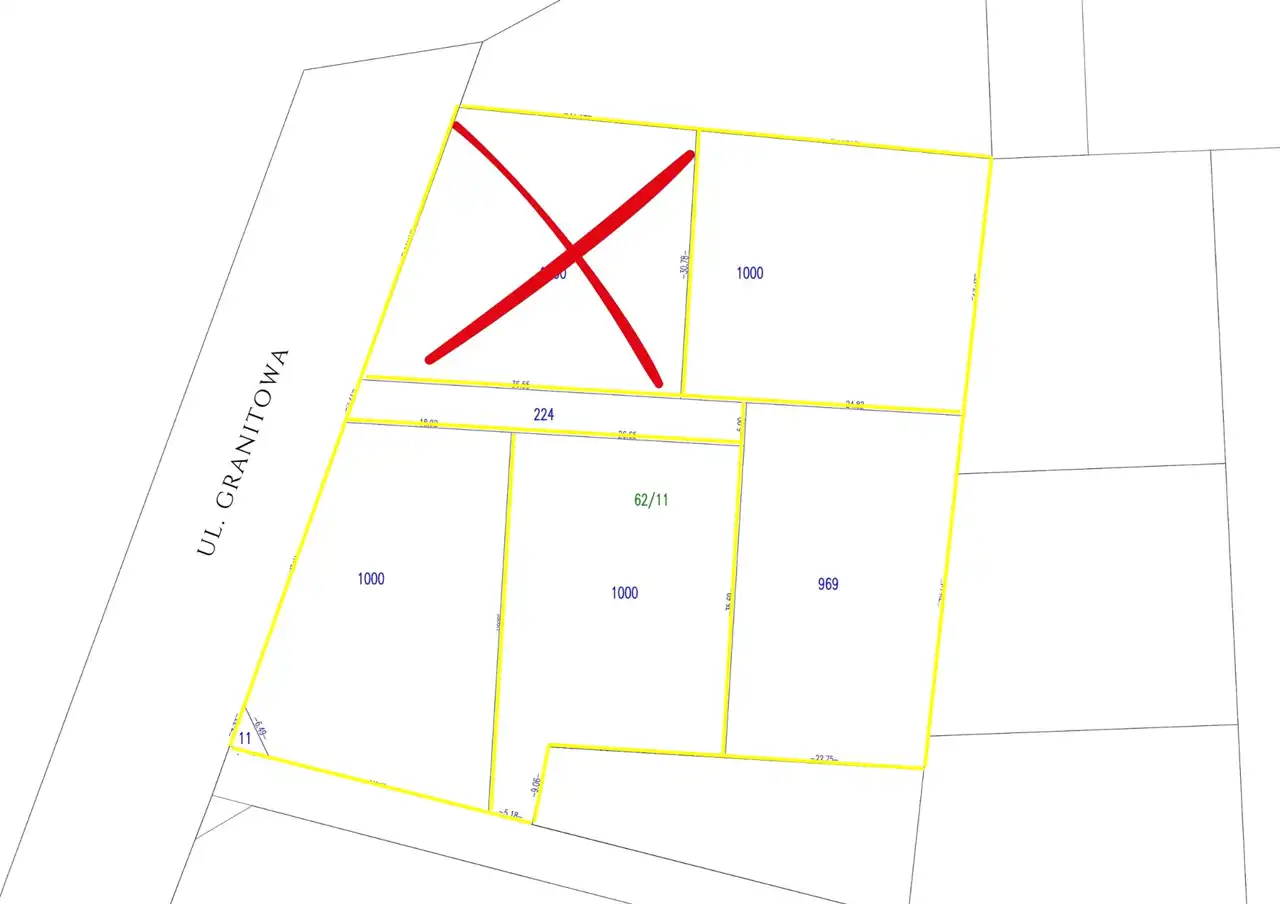 - 1) działka 62/19 o pow. 965m2 - 72 375 zł