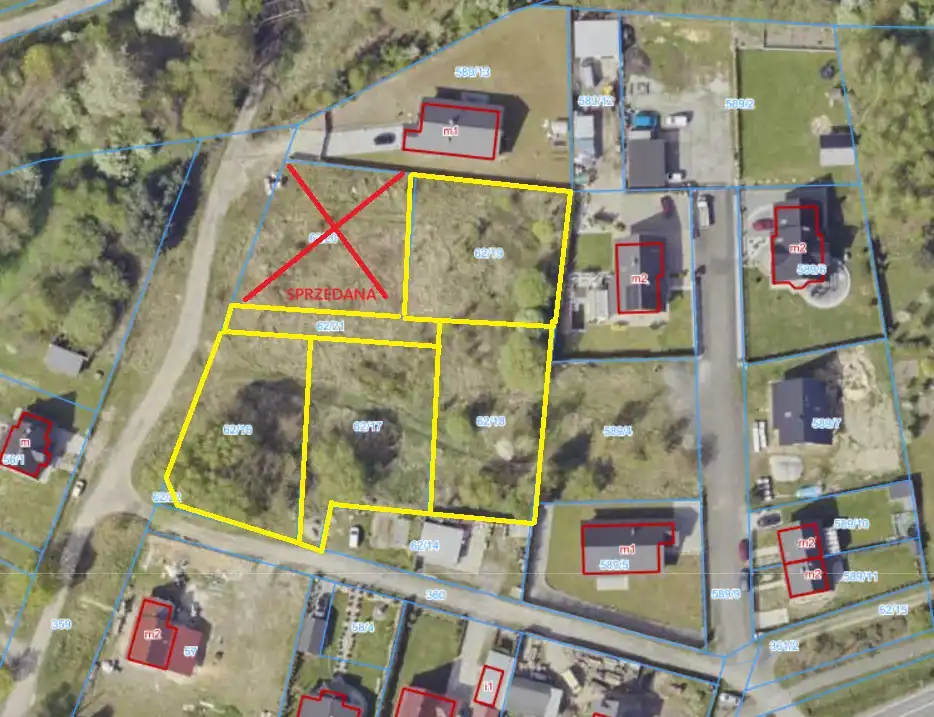 - 4) działka 62/16 o pow. 1000m2 - 75 000 zł
