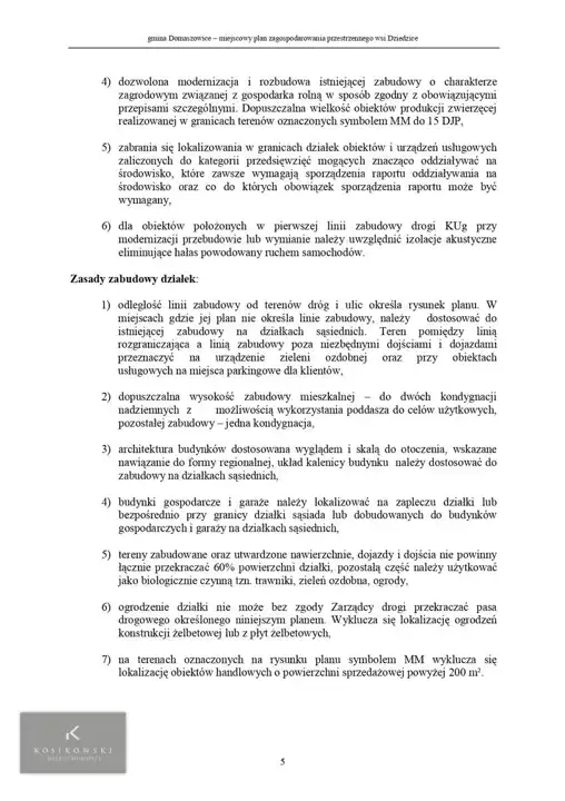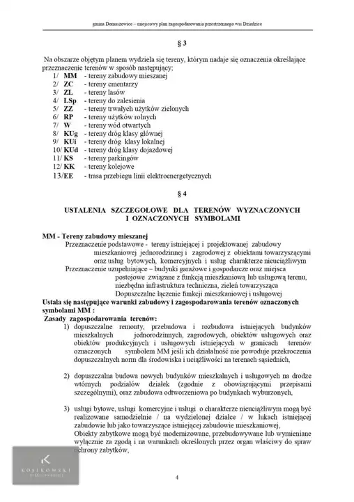 Dla działek o numerach ewidencyjnych 128/3 oraz 128/4 obręb Dziedzice obowiązuje miejscowy plan zagospodarowania przestrzennego wsi Dziedzice, zatwierdzony Uchwałą Nr XIV/88/2004 Rady Gminy Domaszowice z dnia 26 kwietnia 2004 r. opublikowaną w Dzienniku Urzędowym Województwa Opolskiego Nr 39 z dnia 16 czerwca 2004 r. poz. 1142.