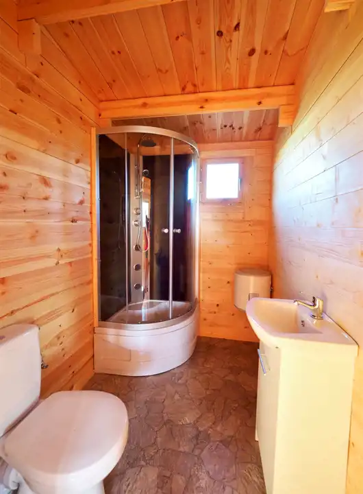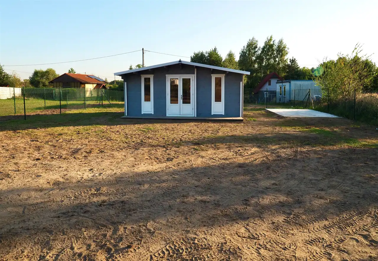 - Domek nowy, o drewnianej konstrukcji (wymiary 6 m x 5 m). Salon z kuchnią, sypialnia, łazienka. Rozprowadzone instalacje wodno - kanalizacyjne oraz elektryczne. W alternatywnie ogrzewanie elektryczne lub klimatyzacja z funkcją grzania.