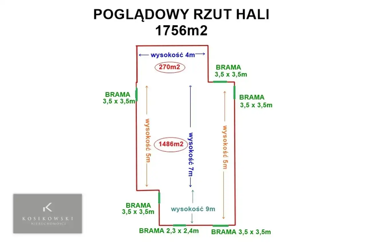 Hala wyposażona jest w 6 bram wjazdowych o zróżnicowanych wymiarach: