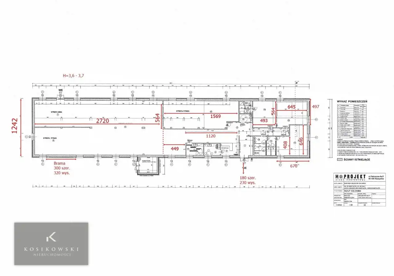 - hala główna o pow. ok. 500 m2 (wysokość 3,6-3,7 m)