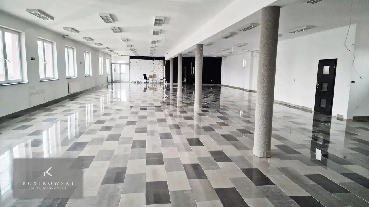 Lokal stanowi dużą, otwartą przestrzeń z możliwością dowolnej aranżacji. Wokół budynku znajduje się duży parking, często odwiedzany przez klientów, znajdujący się przy drodze głównej. Całość posesji ogrodzona płotem.