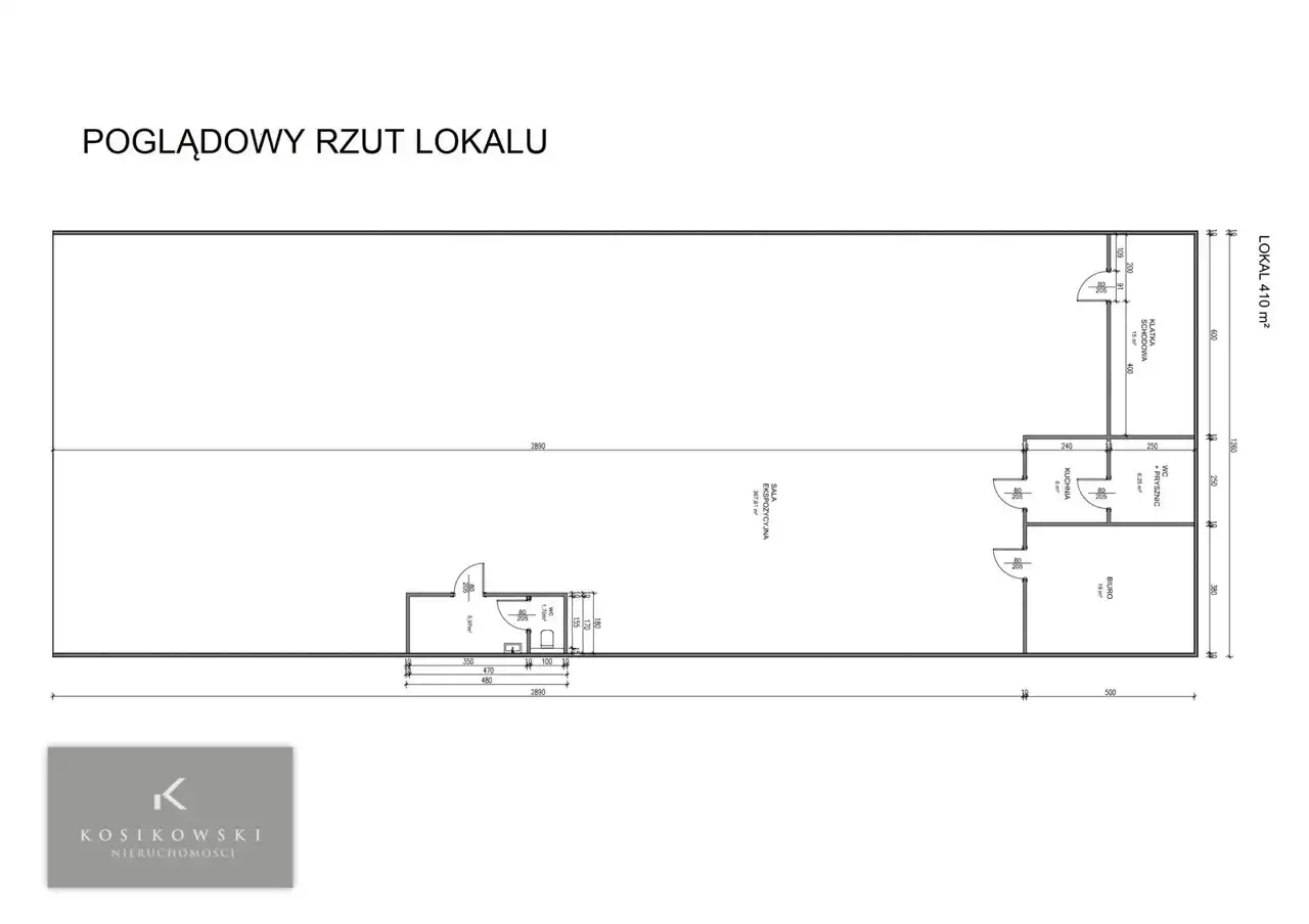 - Dużej sali sprzedaży/ekspozycyjnej o pow. ok 380m2.