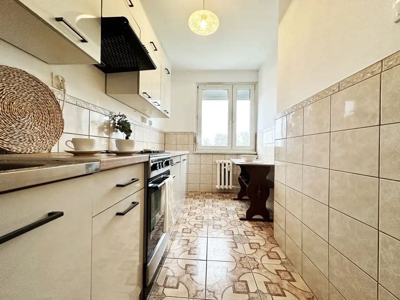 - funkcjonalnej kuchni (6,2 m²) z pełnym wyposażeniem (meble, kuchenka gazowa, okap, zlewozmywak),