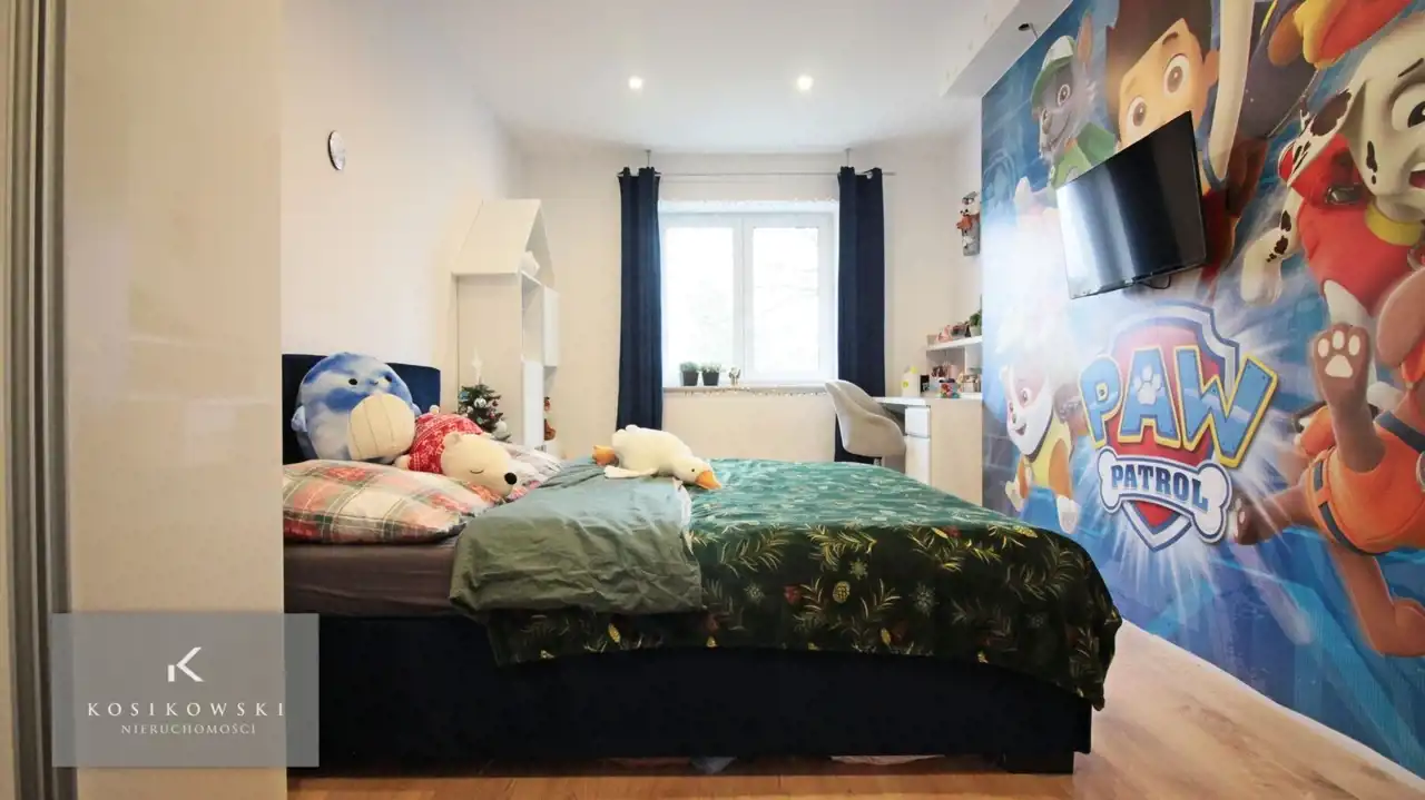 Kolejne dwa pokoje (14 m2 i 17 m2) pełnią funkcję pokoju dziecięcego, na podłodze wyłożono panele, ściany pomalowane na jasne kolory z elementami dekoracyjnymi.
