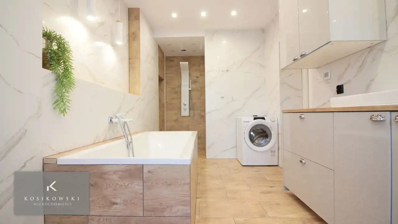 Na sprzedaż w pełni rozkładowe mieszkanie o powierzchni ok. 152,6m2. Wnętrze domu zostało wykończone w bardzo wysokim standardzie, jest zarówno nowoczesne jak i przytulne. Na powierzchni całego mieszkania zastosowano maty grzewcze, które pełnią funkcję ogrzewania podłogowego. W łazience mata została umieszczona w suficie. Mieszkanie wyposażone jest w instalację grzewczą, elektryczną oraz wodno-kanalizacyjną. Okna PCV, budynek mieszkalny został ocieplony z zewnątrz. Do mieszkania przynależy piwnica o pow. ok. 80 m2. Przed budynkiem wybrukowane miejsca postojowe.