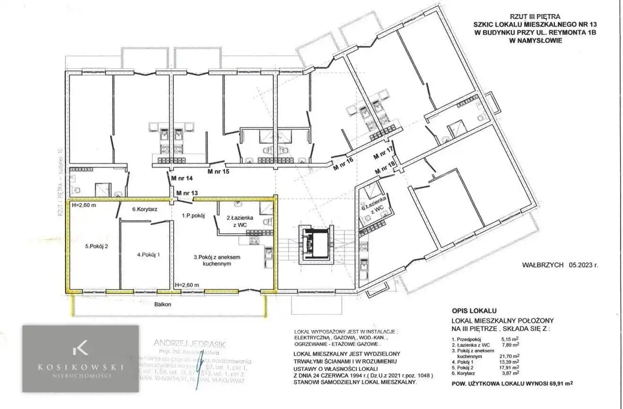- Duży metraż 69,91 m², doskonały układ pomieszczeń.
