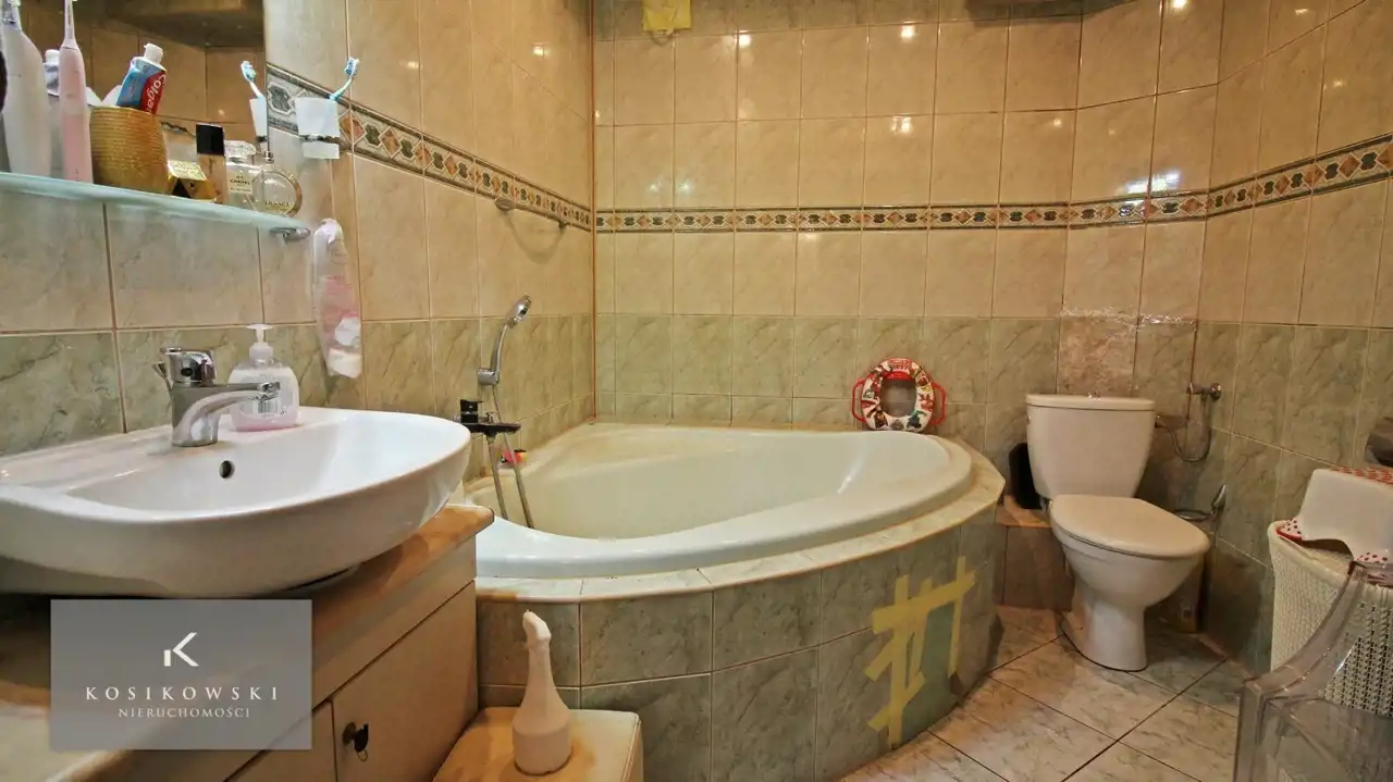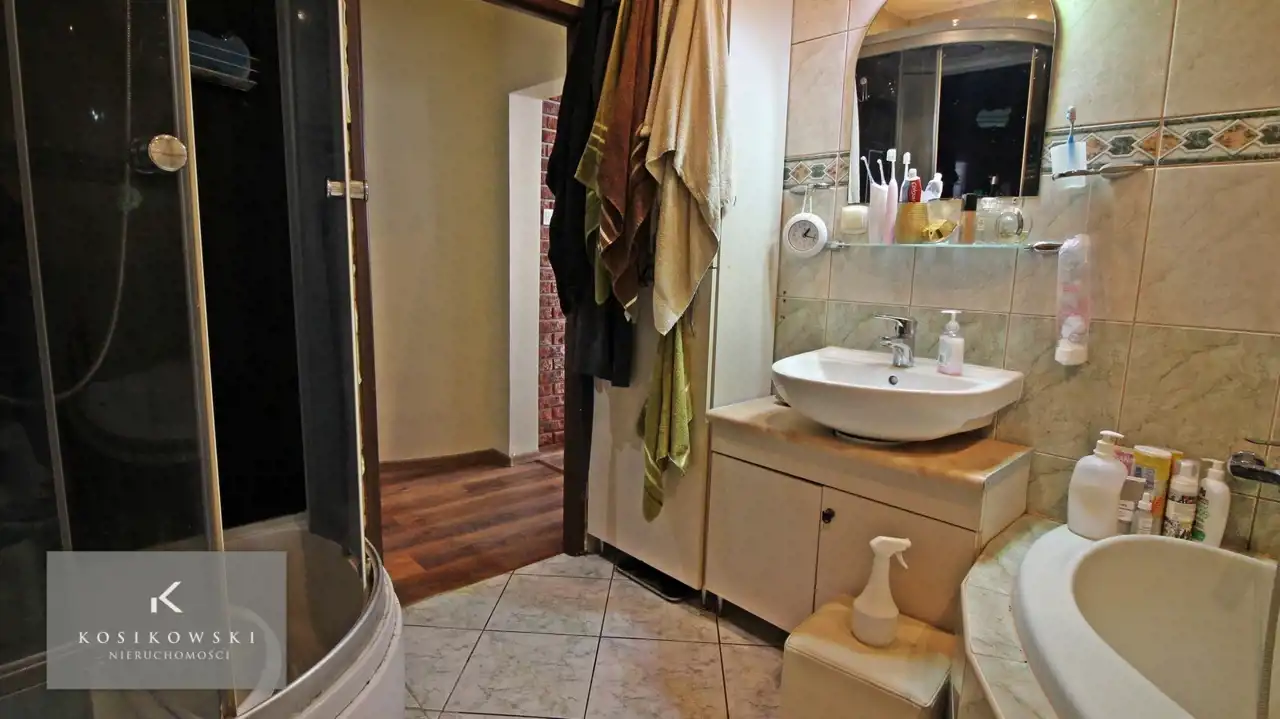W łazience znajduje się także 2-funkcyjny piec gazowy ogrzewający wodę oraz nieruchomość.