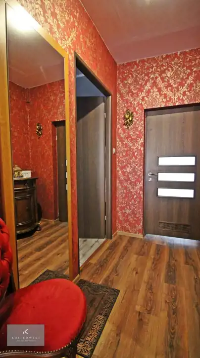 Wejście do nieruchomości rozpoczyna funkcjonalny przedpokój, z którego możemy wejść do wszystkich pomieszczeń w mieszkaniu.