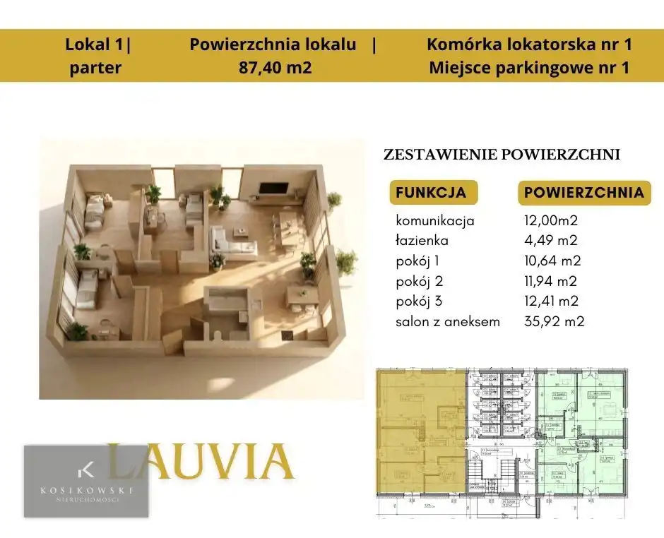 Projektowana powierzchnia mieszkania to 87,40 m2. Cena za m2 lokalu to około 6 381,24 zł brutto.