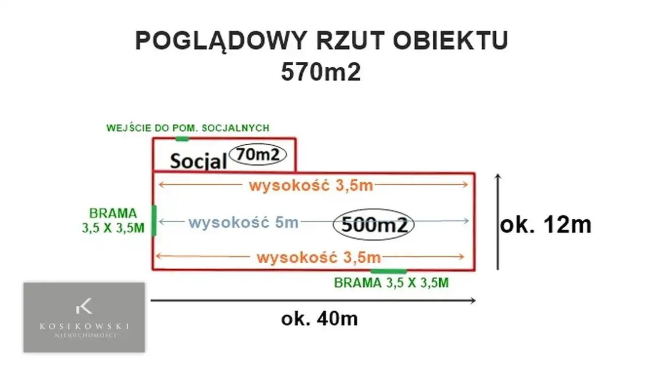 - hala główna o powierzchni 500 m2 (wysokość 3,5-5m)