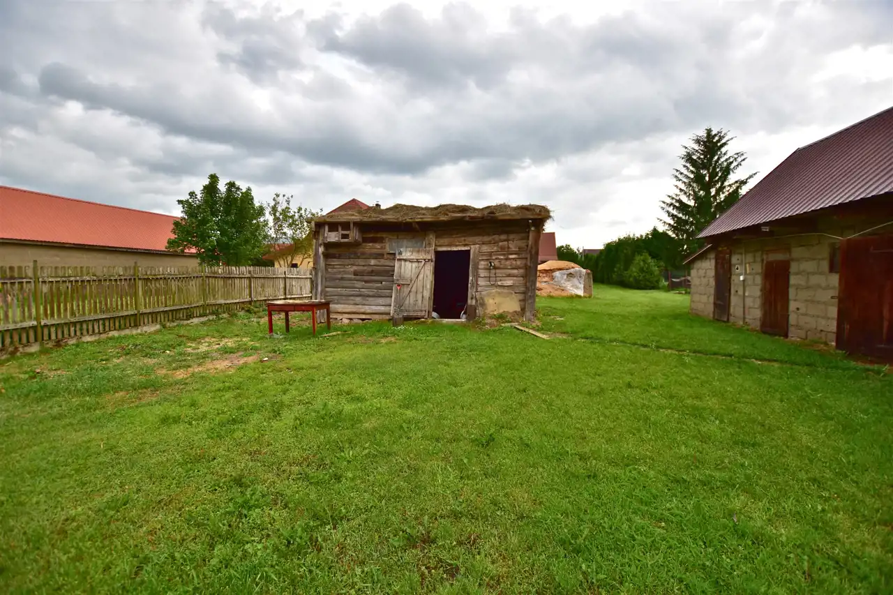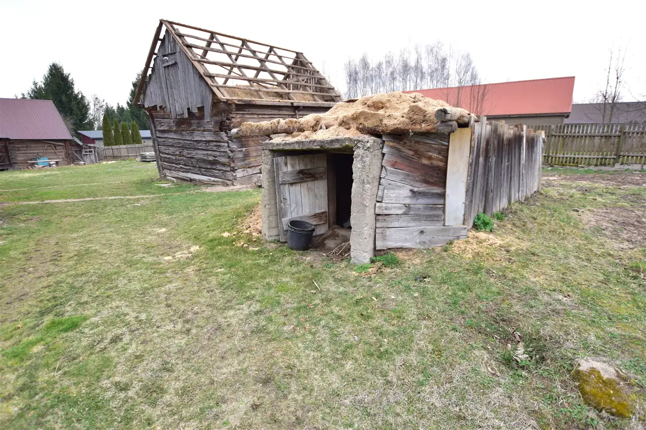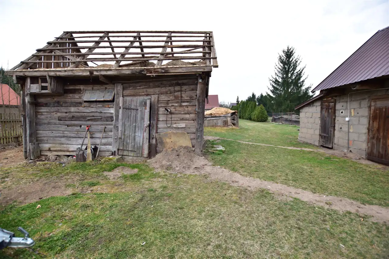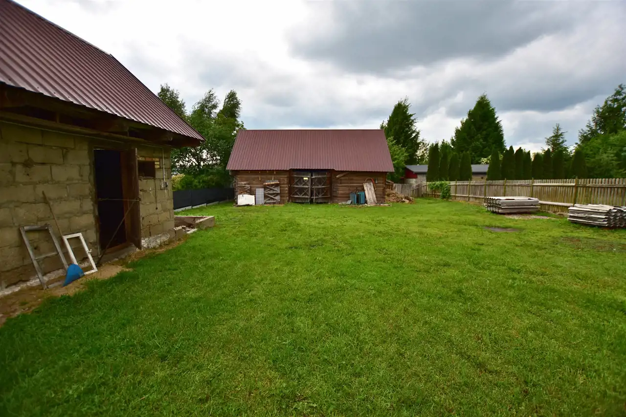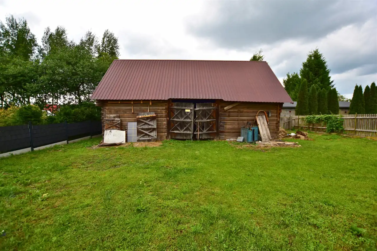 Na zewnątrz znajduje się przestronne podwórko z licznymi nasadzeniami ozdobnymi oraz owocowymi, które zachwycą każdego miłośnika ogrodnictwa. Dodatkowo, do dyspozycji nowych właścicieli pozostaje murowany chlew o powierzchni około 55 m², stodoła z bala o powierzchni 100 m², spiżarnia ziemianka, studnia oraz kurnik z bala. Wszystkie zabudowania przeszły modernizację wskutek wymiany poszycia dachowego.