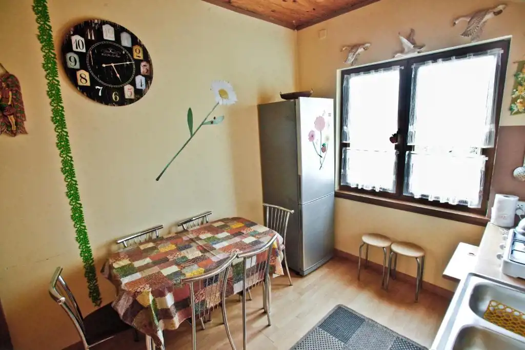 Dom jest ocieplony, ogrzewany kominkiem z systemem rozprowadzenia ciepła do pomieszczeń. Nieruchomość podłączona do lokalnych zbiorników bezodpływowych kanalizacji sanitarnej.