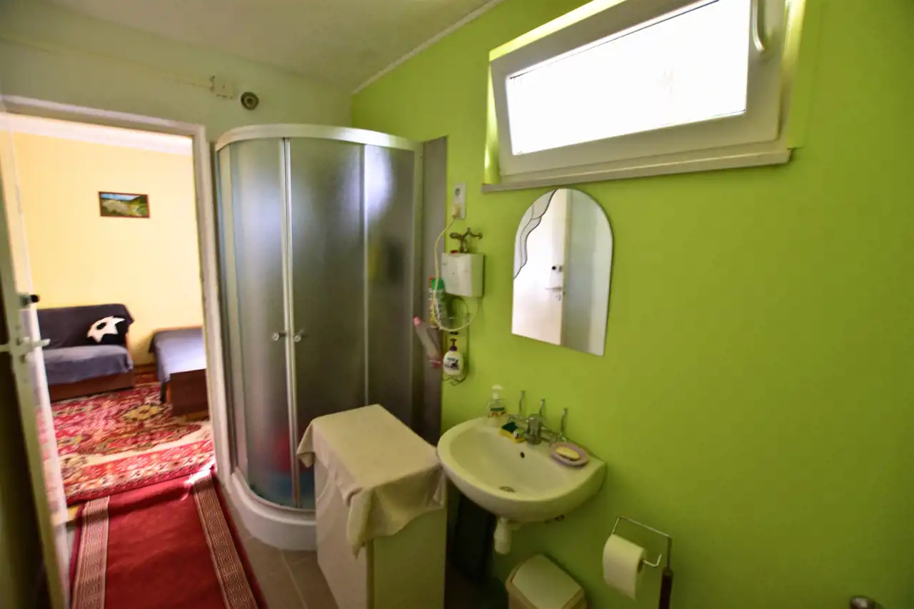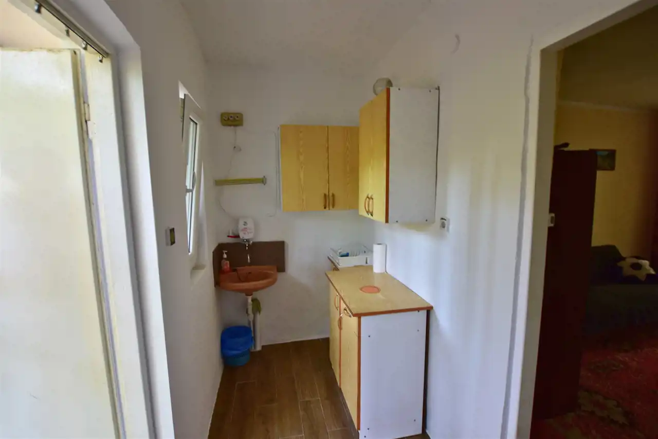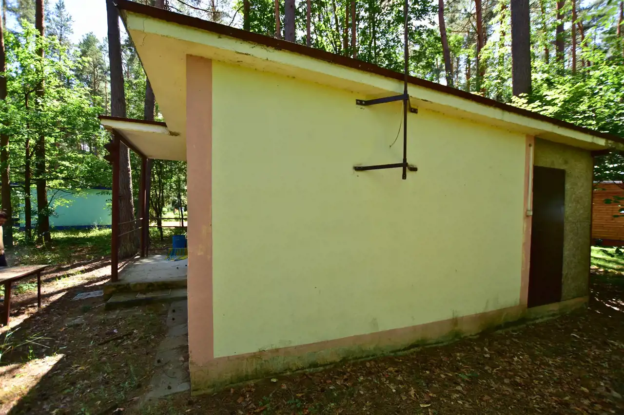 Domek o wymiarach 5,0x6,3m z przestronną werandą (1,3x6,3m) jest ogrzewany kominkiem, co zapewnia komfortowy wypoczynek przez cały rok. Wewnątrz znajdziemy funkcjonalną przestrzeń składającą się z pokoju z aneksem kuchennym, dodatkowego pokoju, łazienki. Łazienka wyposażona jest w prysznic, zlew oraz WC, co czyni dom gotowym do natychmiastowego zamieszkania. Meble na wyposażeniu są wliczone w cenę, co ułatwia szybkie zagospodarowanie wnętrza.